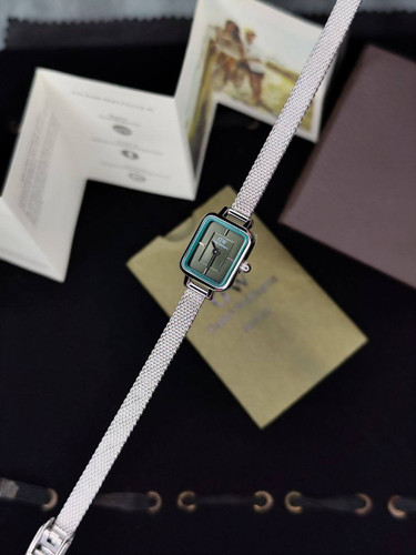 ساعت دنیل ولینگتون بند حصیری مربع سیلور سبز ۱۵ میل
