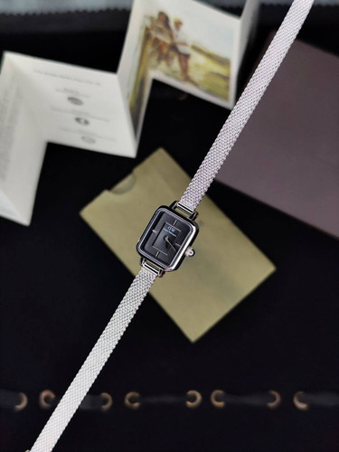 ساعت دنیل ولینگتون بند حصیری مربع سیلور مشکی ۱۵ میل