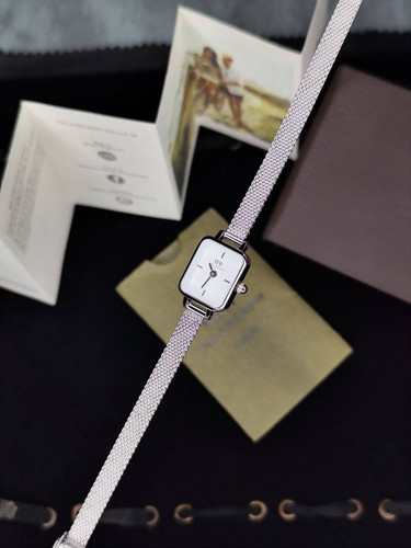 ساعت دنیل ولینگتون بند حصیری مربع سیلور سفید ۱۵ میل