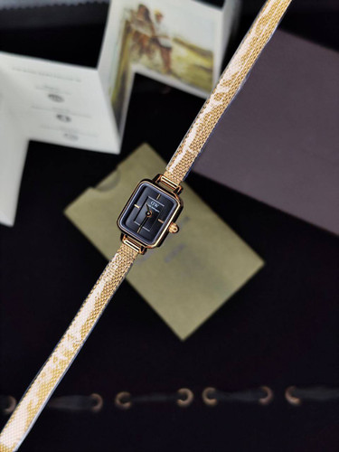ساعت دنیل ولینگتون بند حصیری مربع رزگلد صفحه مشکی ۱۵ میل