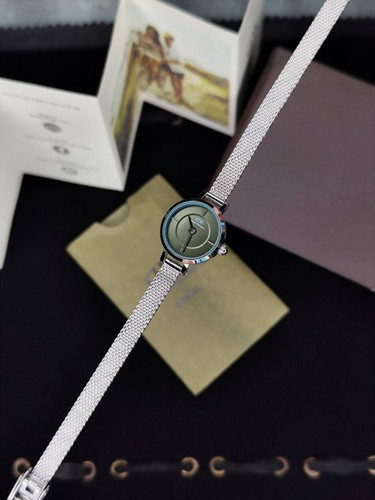 ساعت دنیل ولینگتون بند حصیری گرد بند استیل صفحه سبز ۱۵ میل
