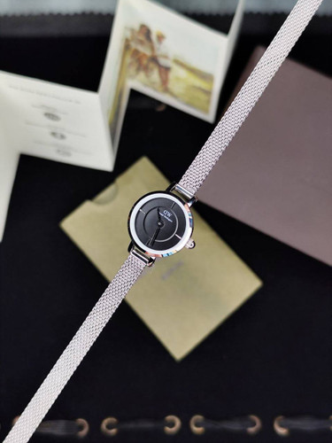 ساعت دنیل ولینگتون بند حصیری گرد بند استیل صفحه مشکی ۱۵ میل