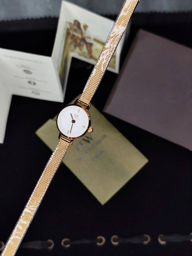 ساعت دنیل ولینگتون بند حصیری گرد بند استیل صفحه سفید ۱۵ میل
