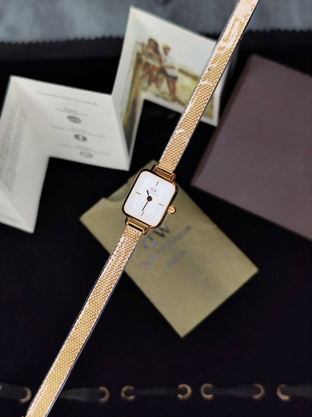 ساعت دنیل ولینگتون بند حصیری مربع رزگلد صفحه سفید ۱۵ میل
